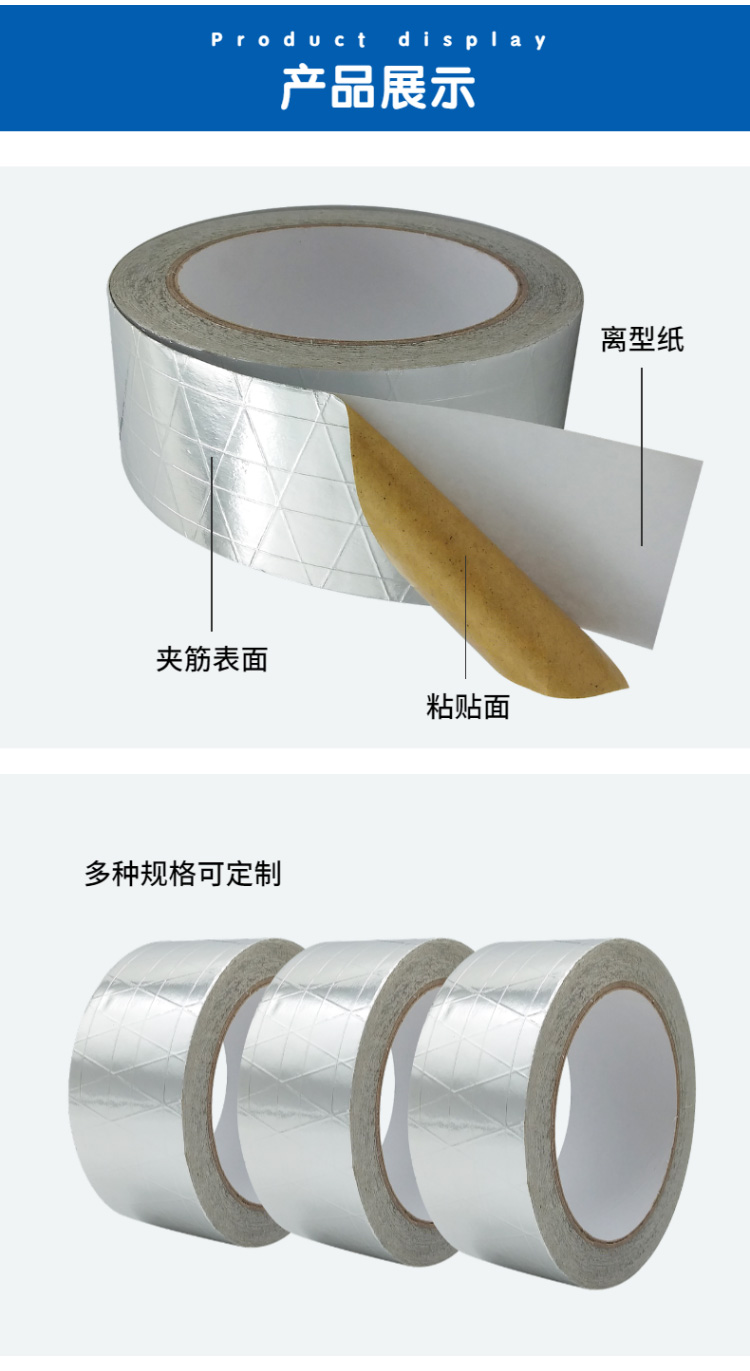 - 由鋁箔復(fù)合雙向或三向玻纖網(wǎng)格和牛皮紙制成,是最常用的管道隔熱的包扎貼面,也適用于其它蒸汽設(shè)備的隔熱應(yīng)用,也因為它的低反射率而成為防輻射應(yīng)用的理想選擇。
