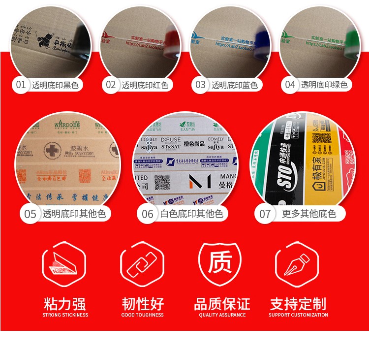 - 以聚丙烯膜( OPP )為基材,涂上壓敏膠制造而成。具有高抗力、粘度佳、質(zhì)輕、低成本等優(yōu)點(diǎn)。 適用于各種包裝封粘固定,特別是在紙箱的封粘上,并能配合自動(dòng) 包裝機(jī)封箱,已成為包裝材料之主流。
