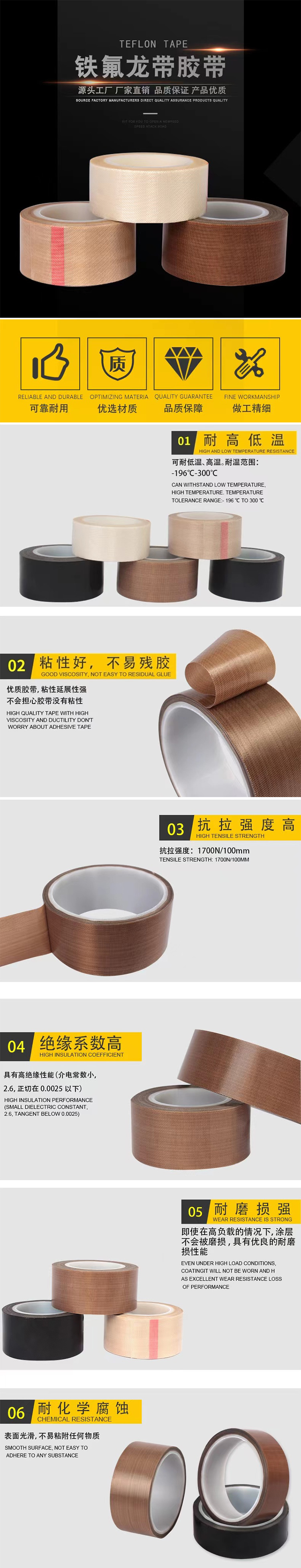 - 鐵氟龍膠帶,又叫特氟龍膠帶,是先采用玻璃纖維為基布,涂覆以鐵氟龍乳液(PTFE)樹脂經烘干后制成鐵氟龍玻璃纖維布。再經二次涂覆以硅粘膠制成的一種耐高溫膠帶。